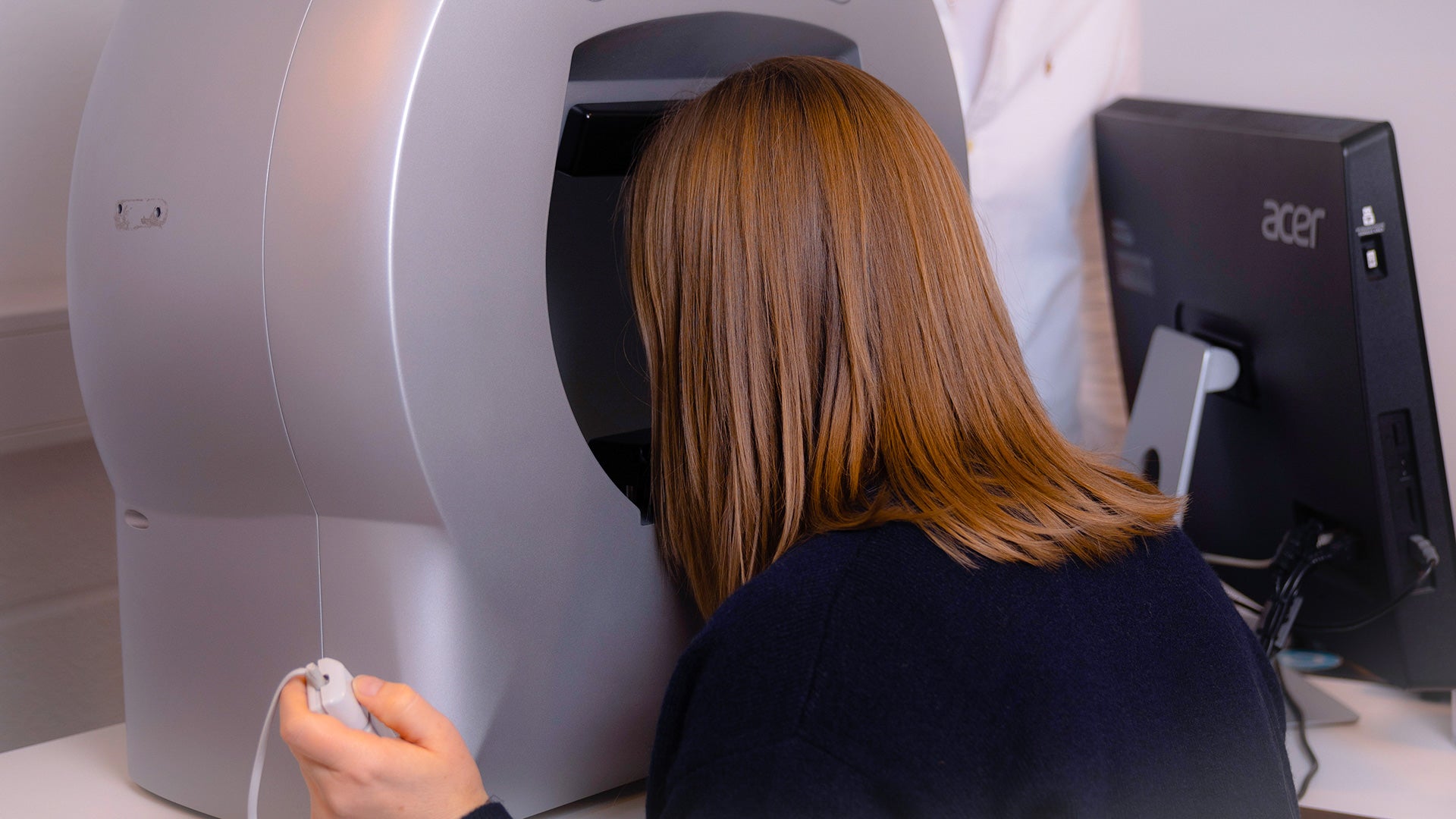 Dette er en rask og nøyaktig test. Måleresultatet kommer umiddelbart og viser hvor en eventuell årsak til innskrenket synsfelt sitter.